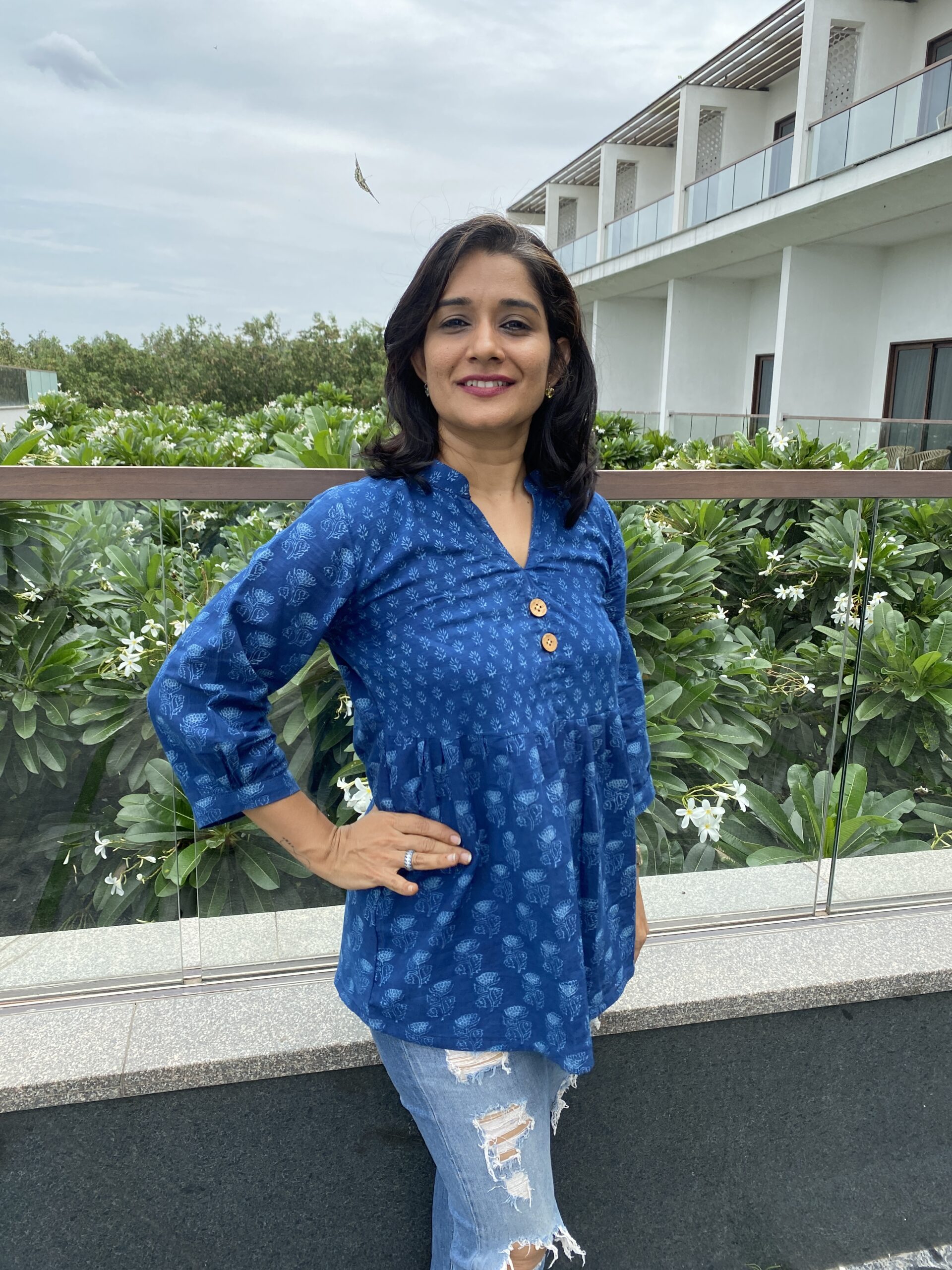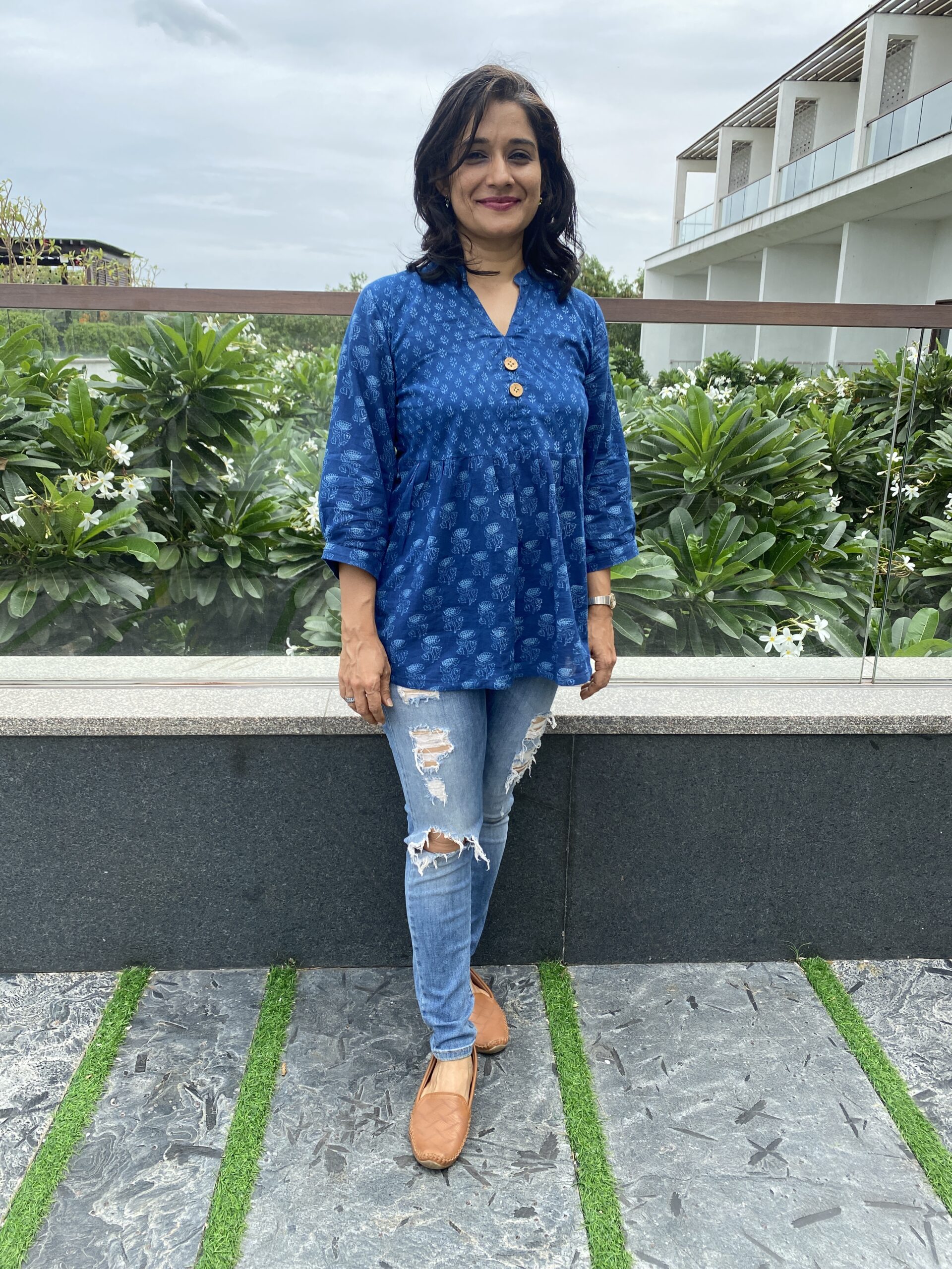 Our love for complementing prints continues and these beautiful indigo notes in a pleated top would just be right for shorts, jeans or leggings. We tell you how to make style statements look so effortless