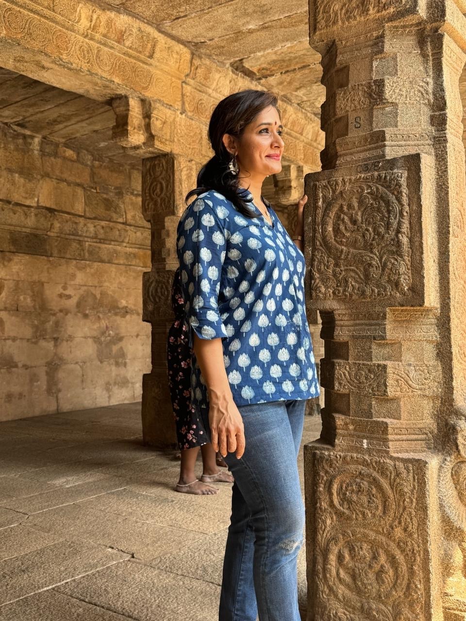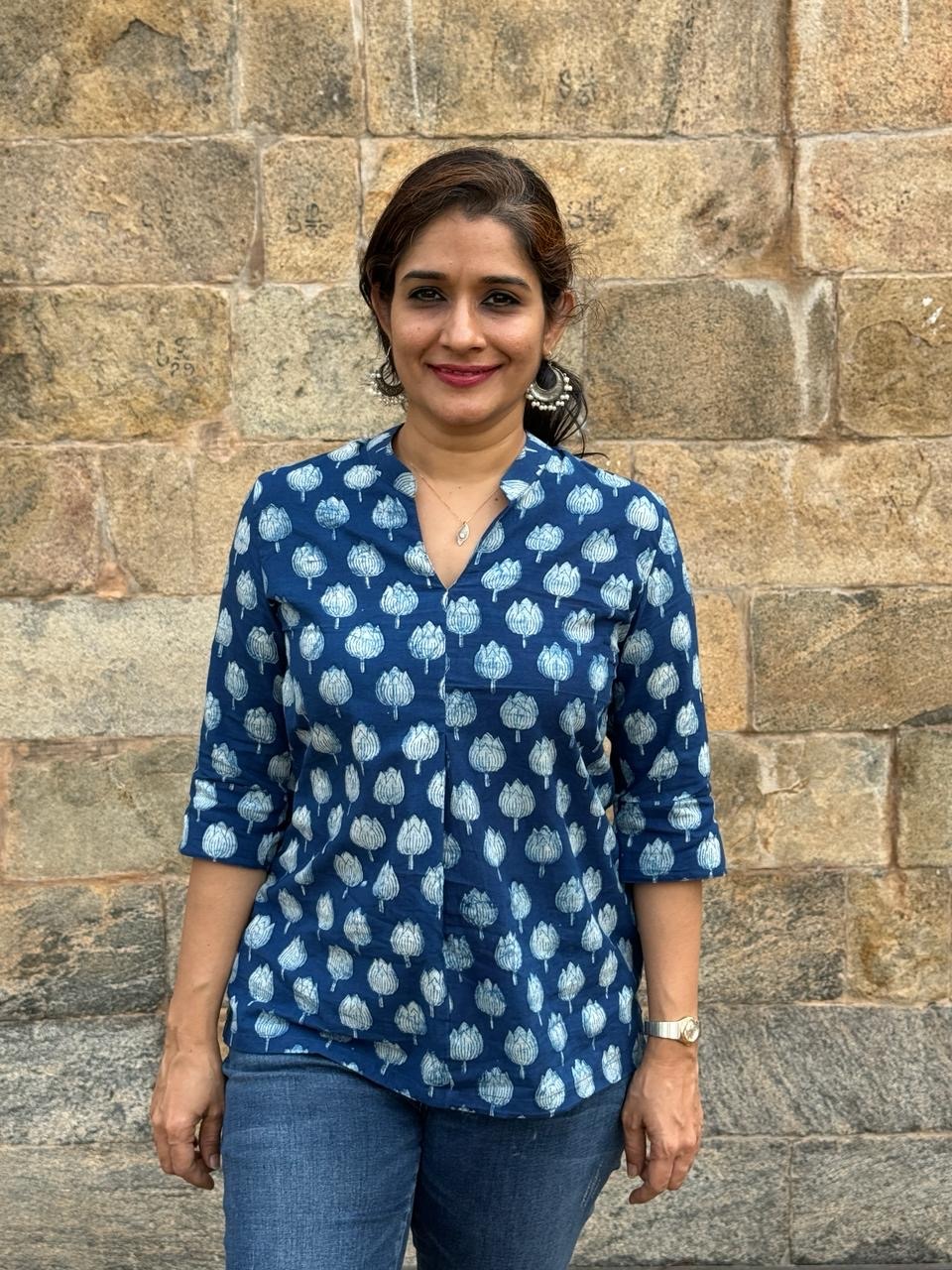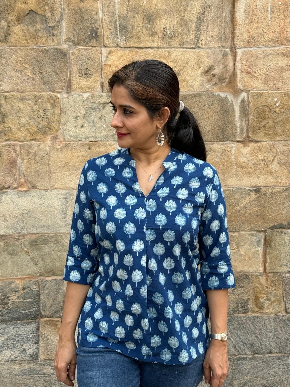 With slim-cut and 3/4th sleeves, these beautiful indigo notes in a pleated top would just be right for shorts, jeans or leggings. We tell you how to make style statements look so effortless