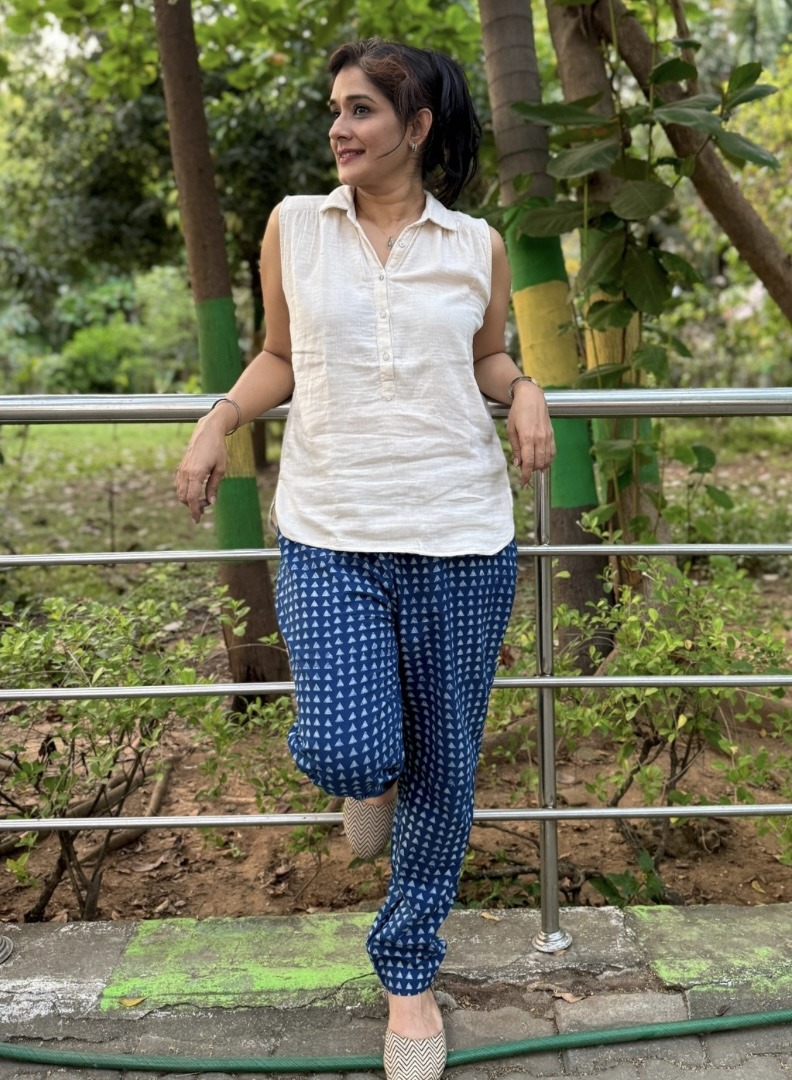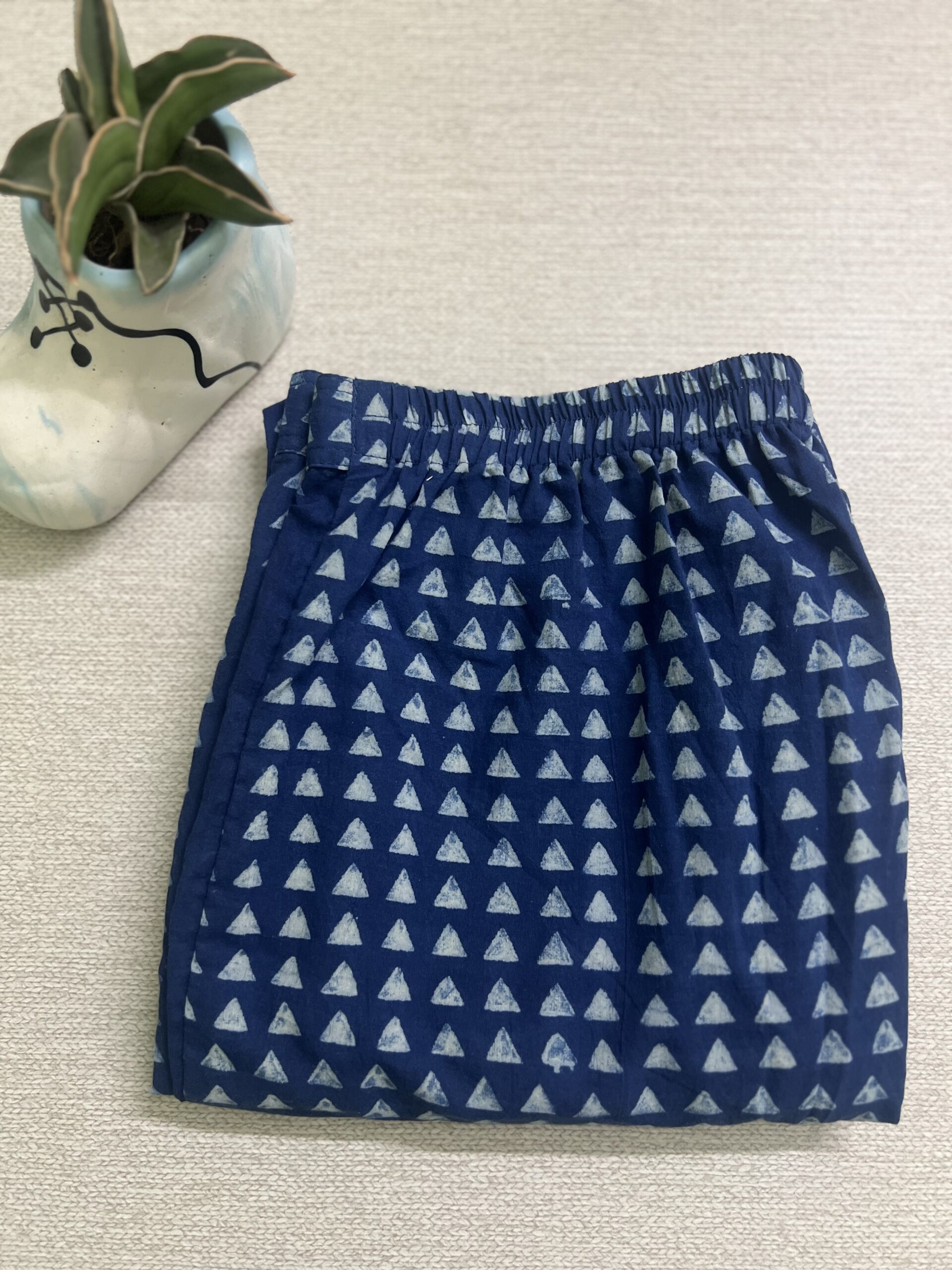 Indigo Hand block printed Pants in pure cotton in the size of your choice. They come with full elastic and pockets, giving you the flexibility to go about your daily tasks.