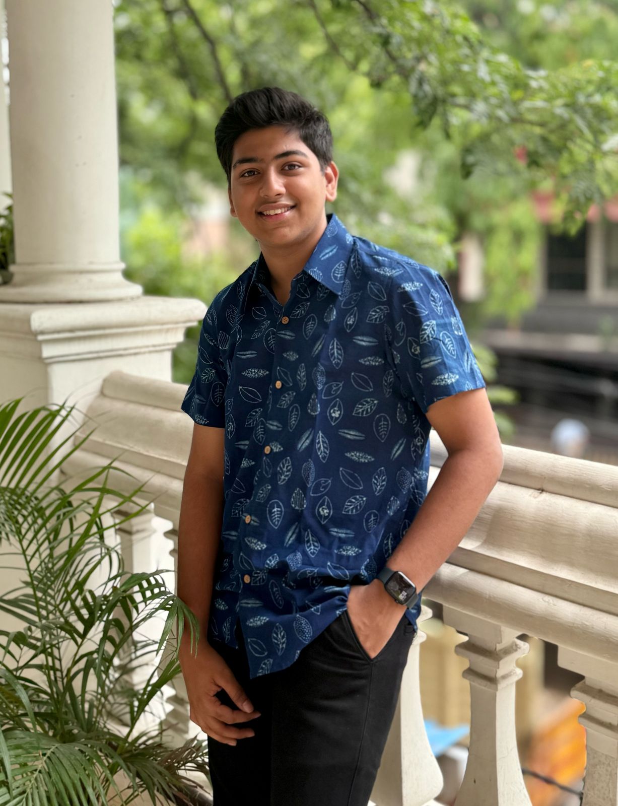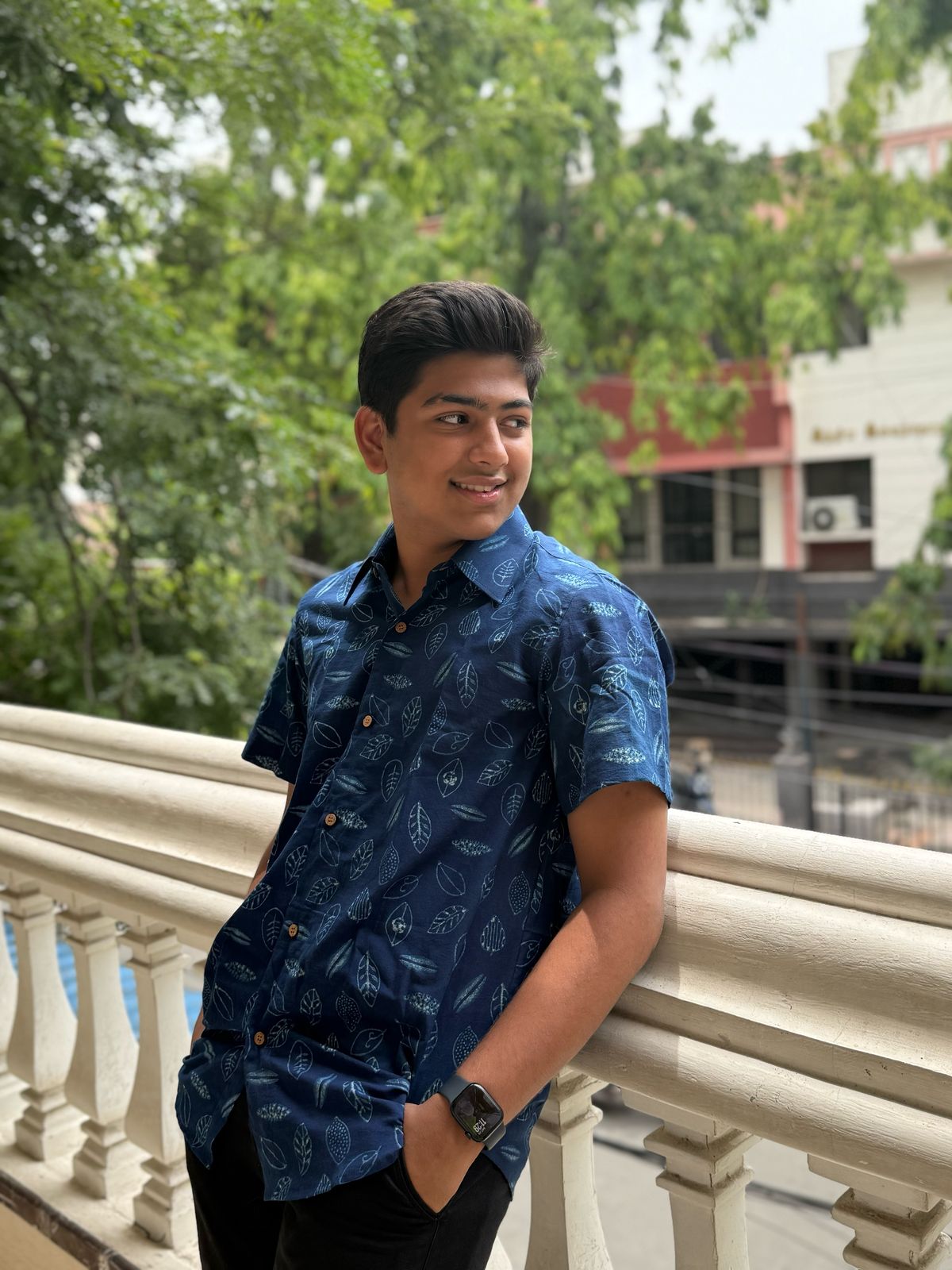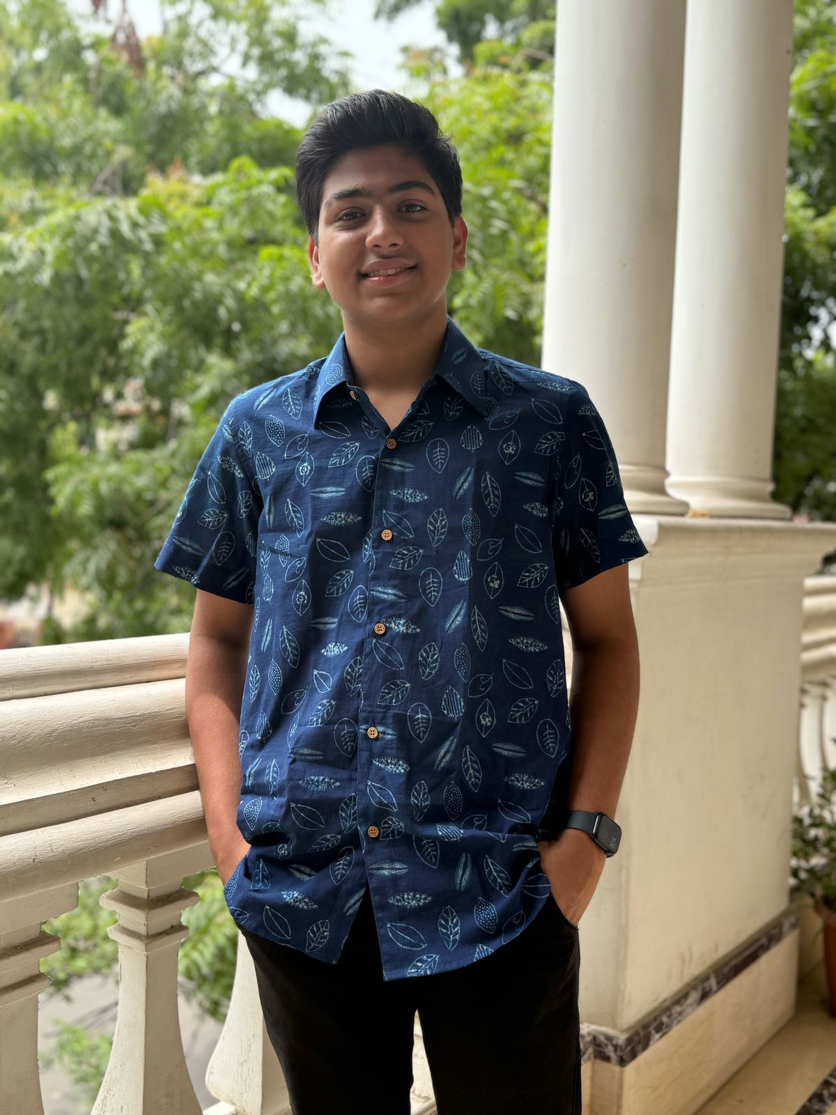 A bold blue block printed shirt is all it takes to make a picture of poise. This half sleeve shirt is made of fabric handcrafted with love by the artisans of Akola, Rajasthan.