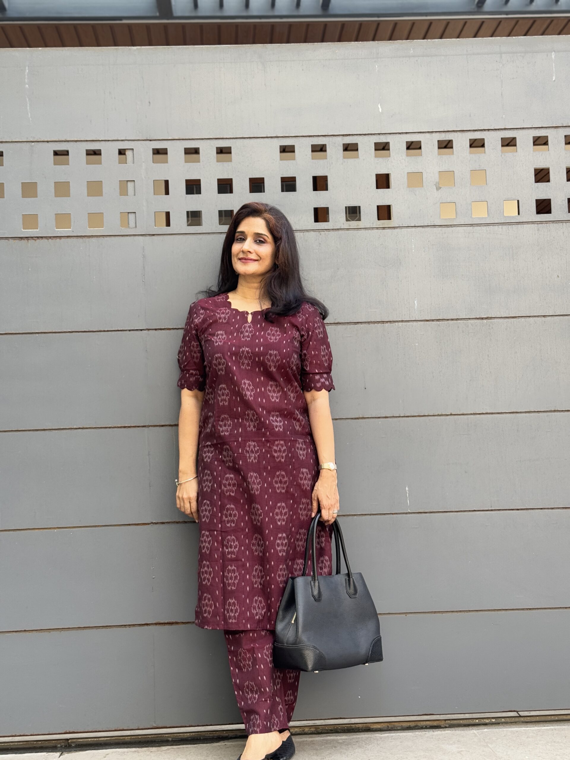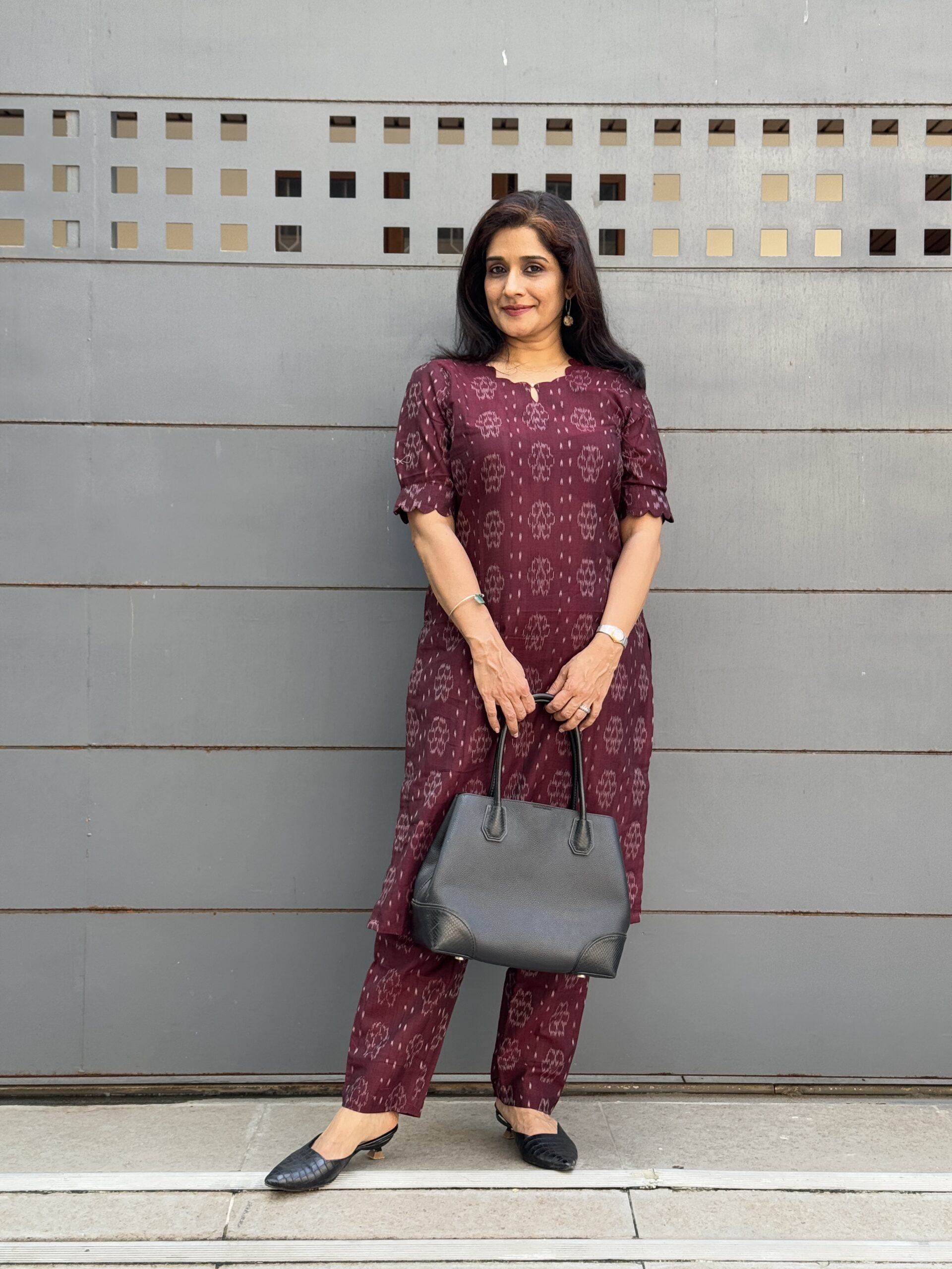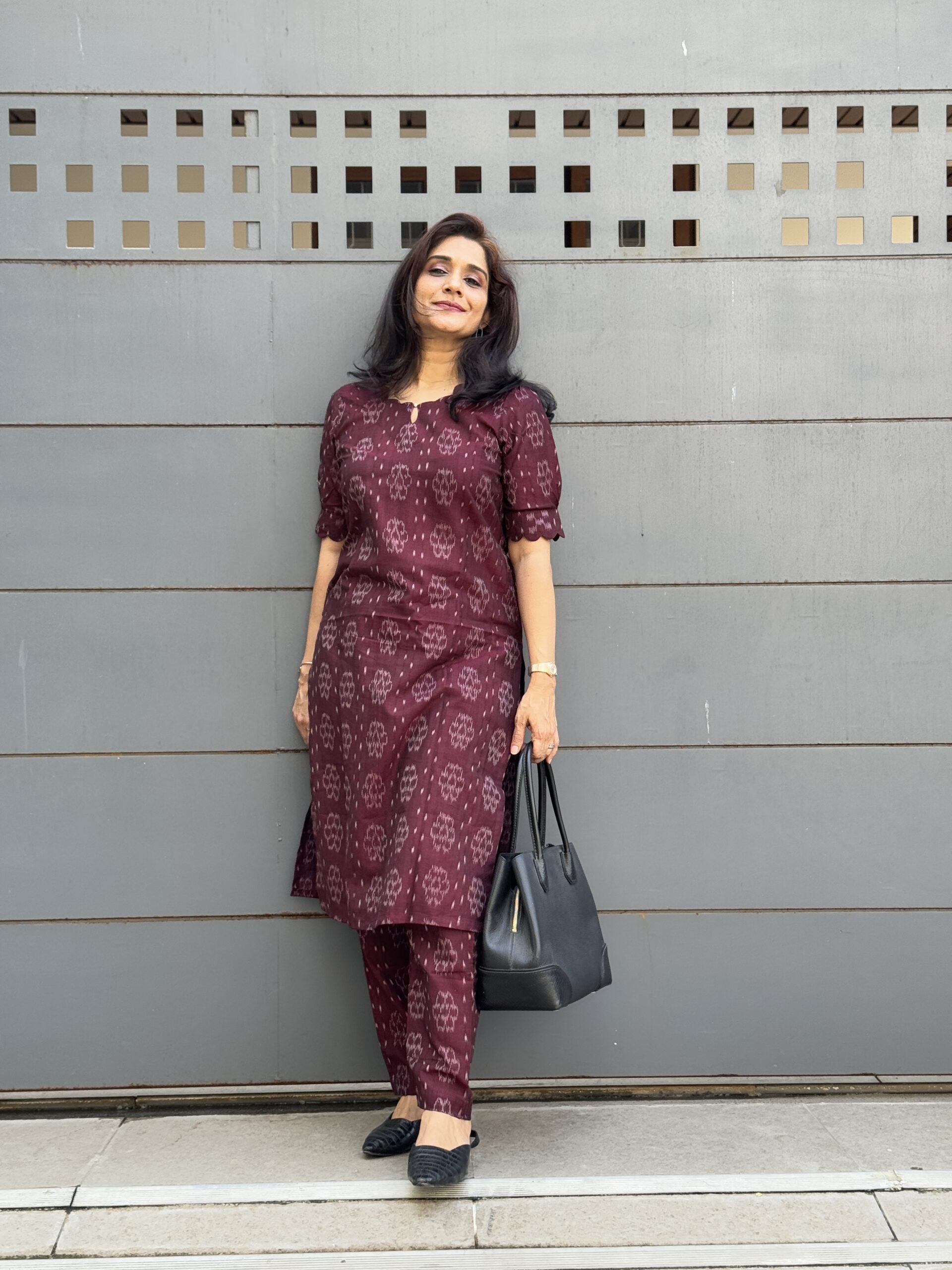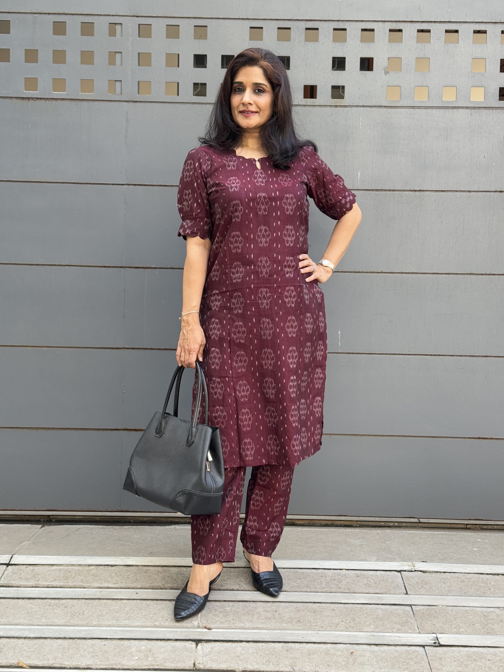 Introducing this deep maroon ikkat co-ord set, that seamlessly blends the rich heritage of Sambalpuri Ikkat with a modern, versatile design. This coord set exudes understated elegance, featuring a tailored top and relaxed trousers that promise both comfort and style.